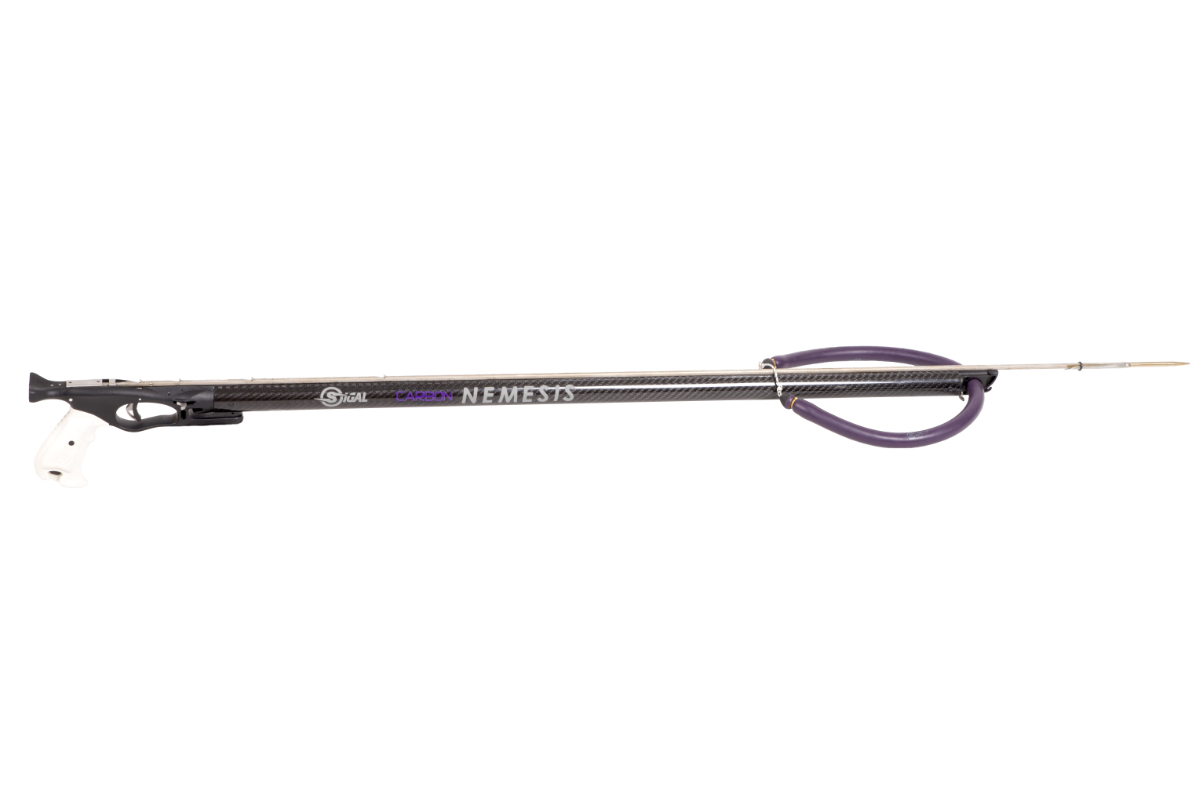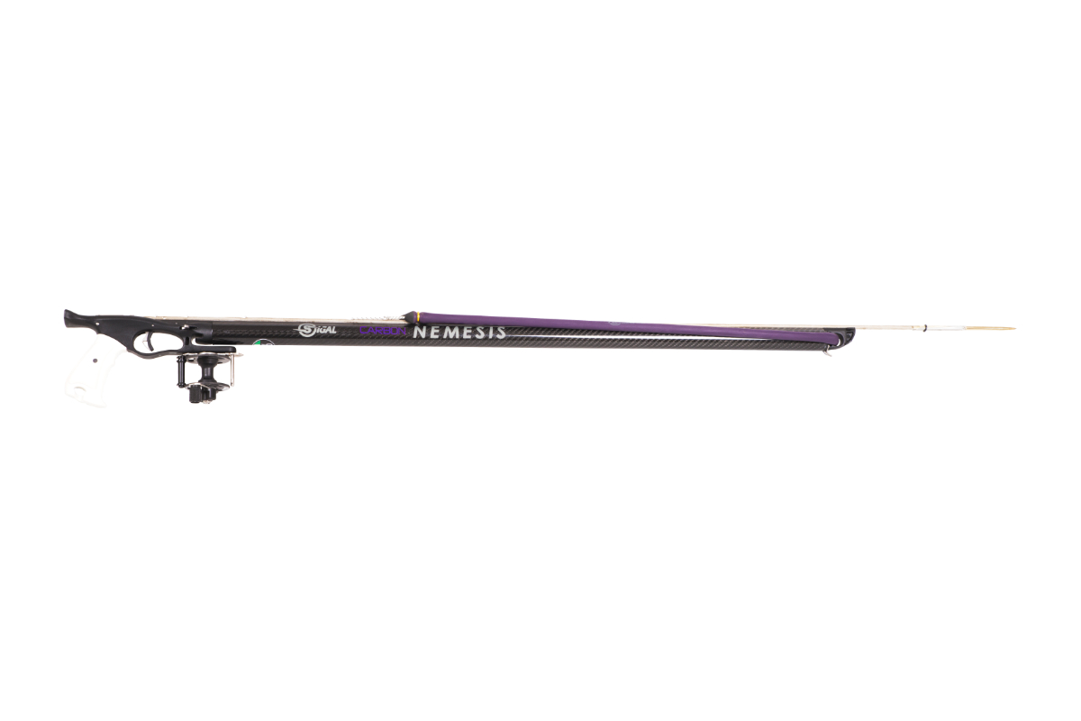 L’impugnatura è progettata per montare i mulinelli Sigalsub in una posizione spostata all’indietro per il miglior bilanciamento e brandeggio. Il Nemesis Carbon One è disponibile con il mulinello Edy Carbon.